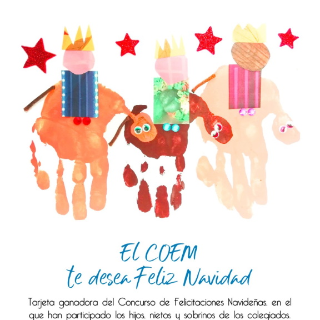 A continuación, podéis descargaros en pdf para imprimir y doblar como una tarjeta el dibujo ganador del Concurso del COEM de Felicitaciones Navideñas en el que han participado los hijos, nietos y sobrinos de nuestros colegiados. El ganador ha sido Luca Otero Antoranz (3 años).
