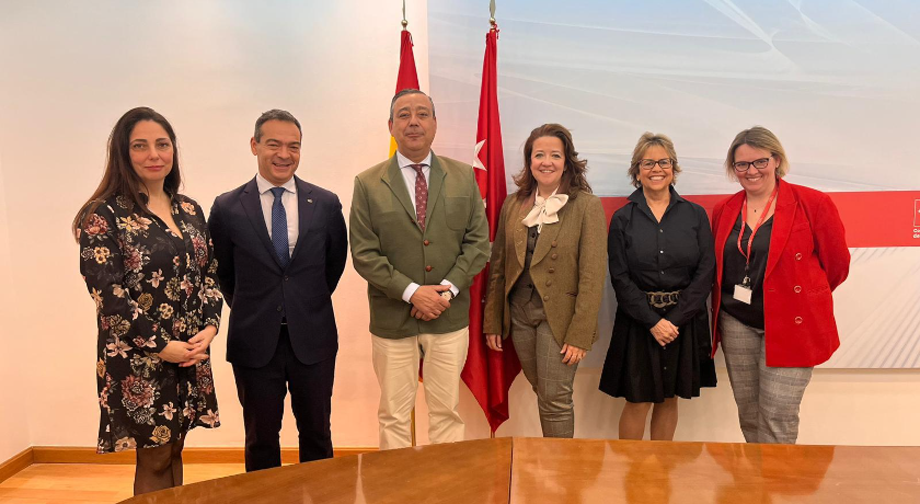 La presidenta del COEM, Dra. Marisol Ucha; el presidente del Consejo General de Dentistas, Dr. Óscar Castro; y el Dr. Guillermo Pradíes se han reunido hoy con la consejera de Sanidad de la Comunidad de Madrid, Fátima Matute, y su equipo para avanzar en la creación de las especialidades en Odontología.